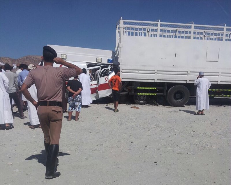 حادث بين سيارة إسعاف وشاحنة ومعلومات تؤكد وجود وفيات